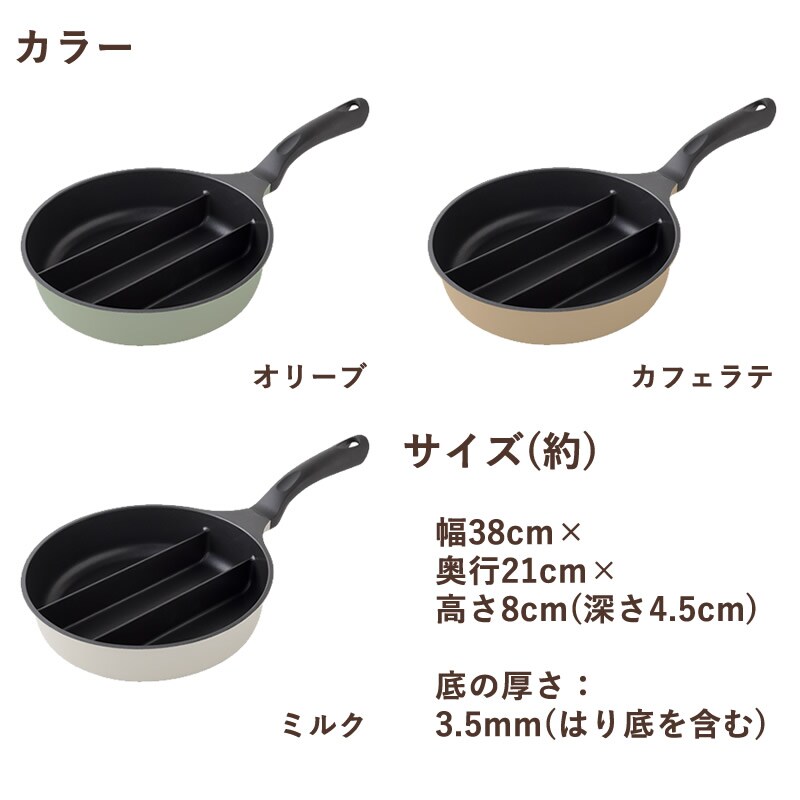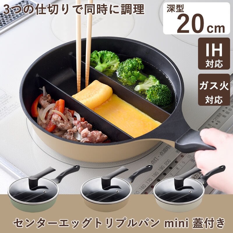 センター エッグ トリプル パン 仕切り フライパン たまご焼き 同時調理 卵焼き 玉子焼き 朝食 お弁当 時短 IH対応 ガス火対応 アーネスト アイデア商品 アイデアグッズ 便利グッズ 時短グッズ オリーブ カフェラテ ミルク