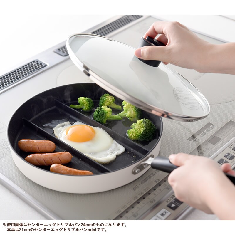 センターエッグトリプルパン ガラス蓋セット 21cm 仕切り フライパン 蓋付き たまご焼き 同時調理 卵焼き 玉子焼き 朝食 お弁当 時短 IH対応 ガス火対応 アーネスト