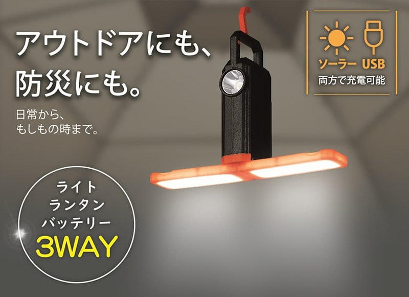 懐中電灯+ランタン+モバイルバッテリーの3WAY仕様。