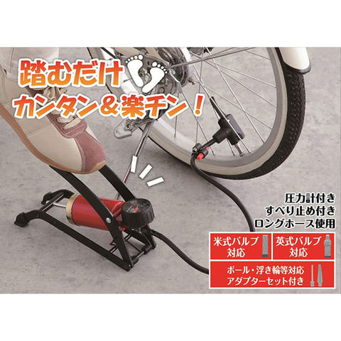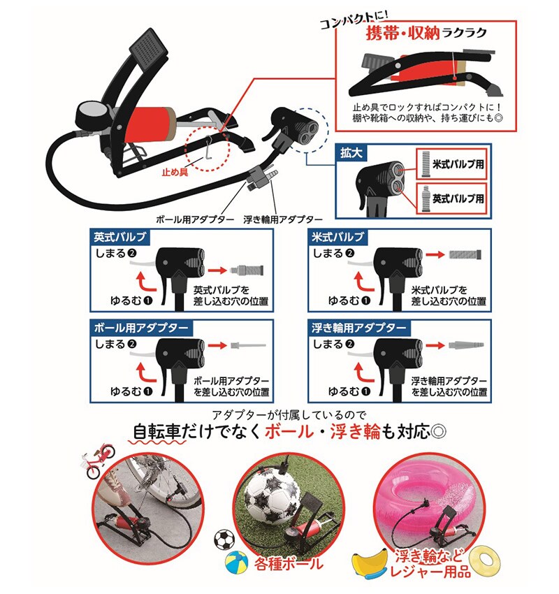 足踏み型空気入れ フットプッシャー 空気入れ 自転車 ボール 浮き輪 キャンプ アウトドア スポーツ 簡単 コンパクト 米式バルブ対応 英式バルブ対応