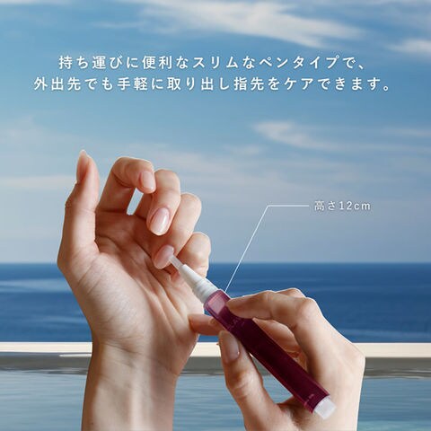 ペン型で使いやすく、持ち運びにも便利。香り付きネイル美容液で、フラワーの香り、シーの香り、フォレストの香りの3種類がり、アロマのようなリラックスできる良い香りです。