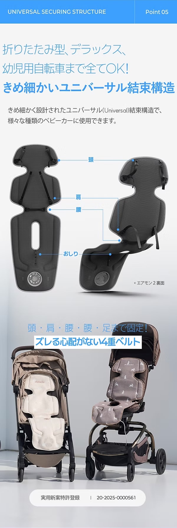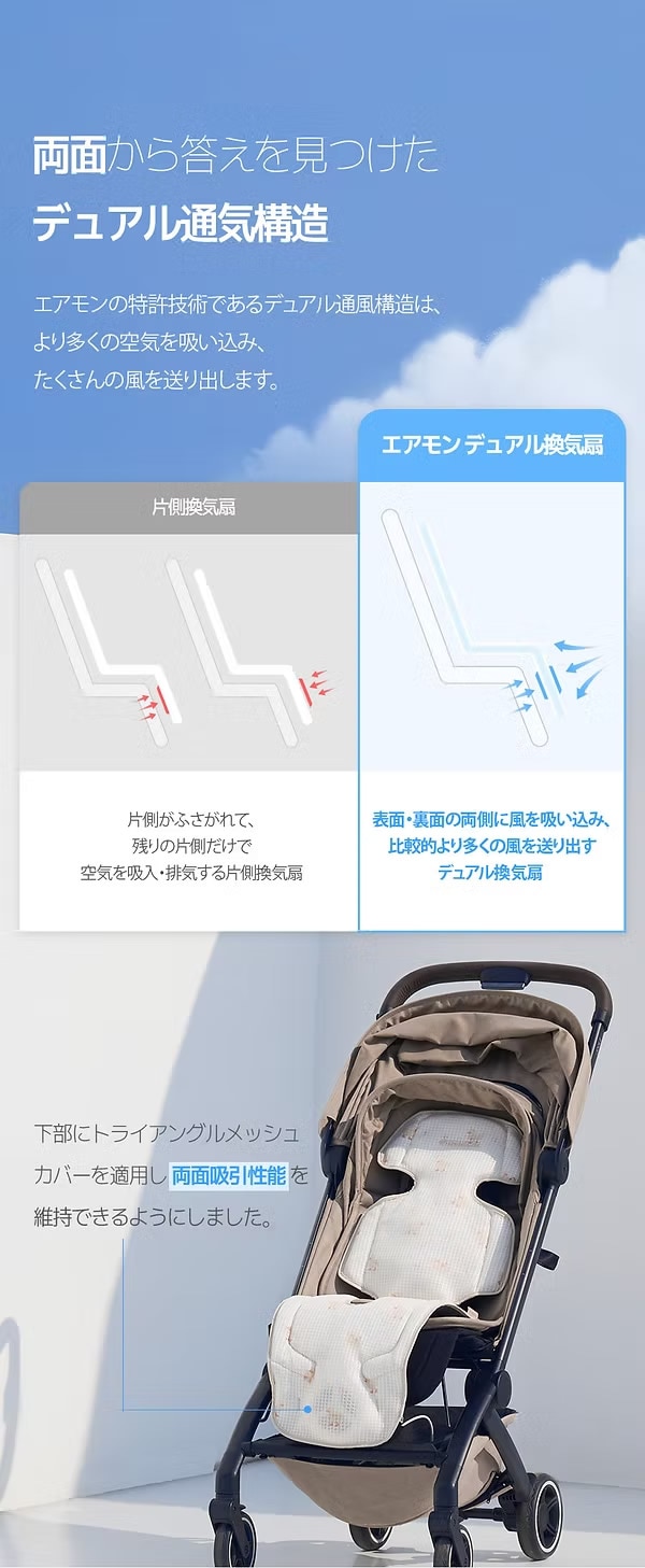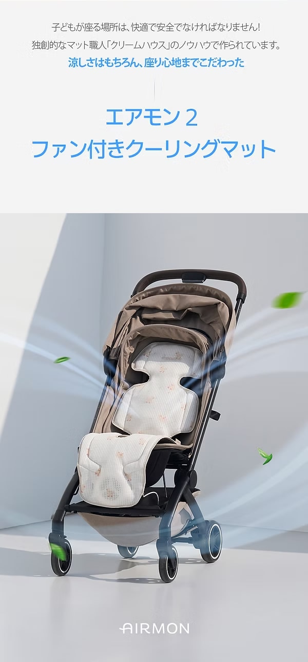 猛暑でも赤ちゃんを快適に、家族のお出かけを支える、次世代スマートクーリングマット「エアモン」が新しくなって涼しさと安心お届けします。