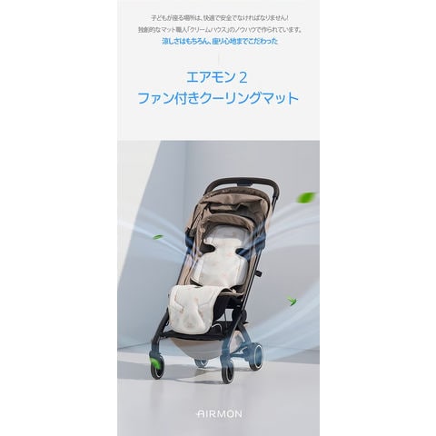 AIRMON エアモン ベビーカー クールシート ファン付き 保冷 送風式 シート クーリングマット チャイルドシート 赤ちゃん 子供 暑さ対策 冷却 扇風機 スマホ操作 お出かけ 旅行 外出 クリームハウス