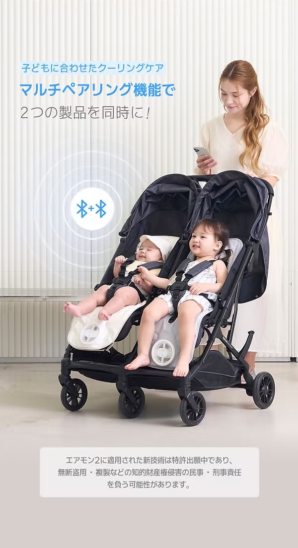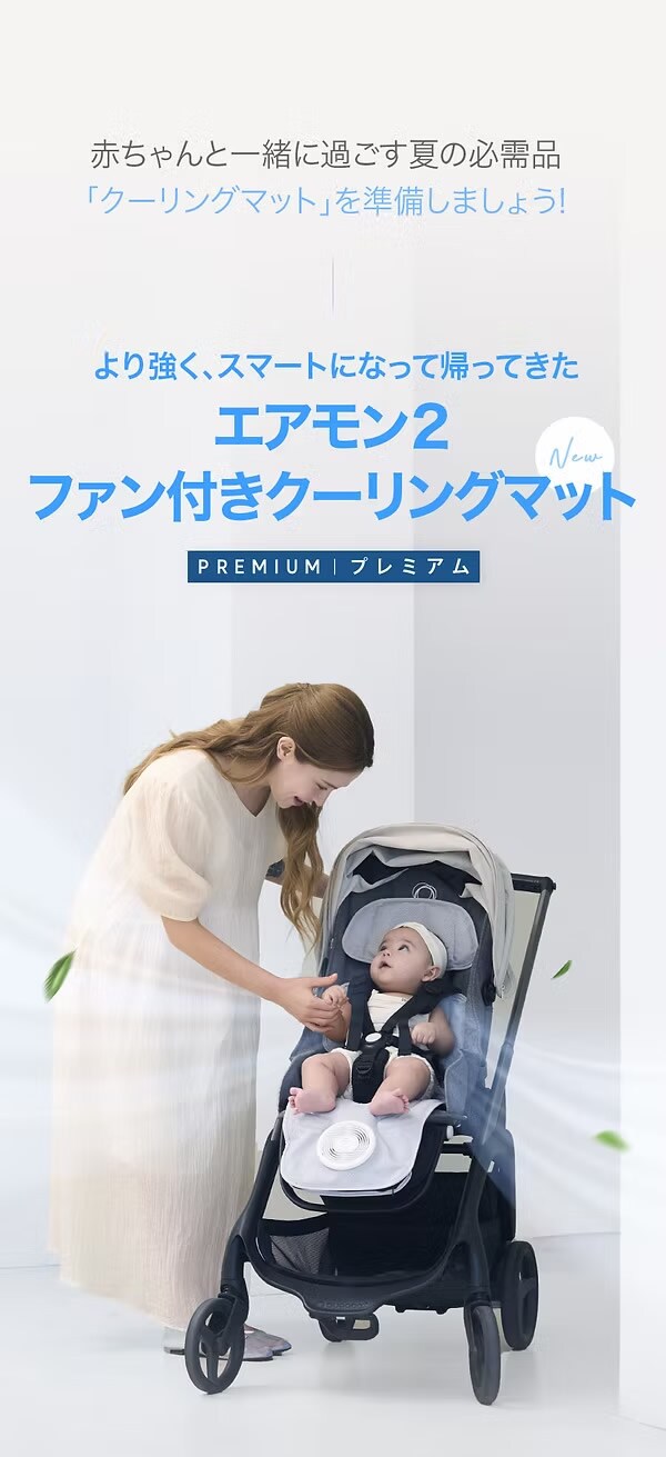 猛暑でも赤ちゃんを快適に、家族のお出かけを支える、次世代スマートクーリングマット「エアモン」が新しくなって涼しさと安心お届けします。