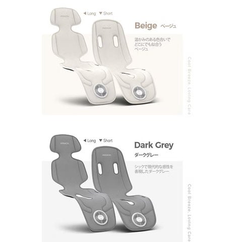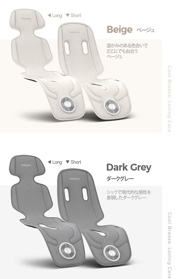 ロング・ショートの2サイズ展開。4点固定ベルトでズレにくく、チャイルドシートにも対応。