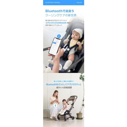 専用アプリで風量やモードをスマホから遠隔操作。Bluetooth搭載で、育児をもっとスマートに。