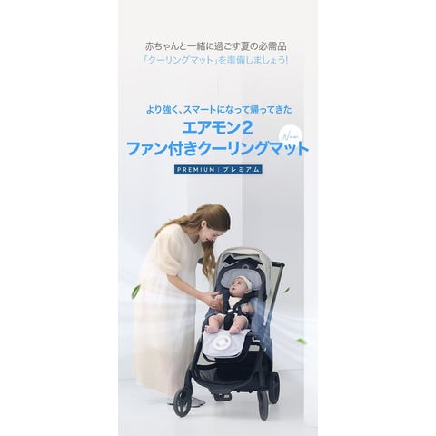 エアモン2 プレミアム ベビーカー クールシート ファン付き 保冷 送風式 シート クーリングマット チャイルドシート 赤ちゃん 子供 暑さ対策 冷却 扇風機 スマホ操作 お出かけ 旅行 外出 クリームハウス