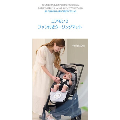 AIRMON エアモン ベビーカー クールシート ファン付き 保冷 送風式 シート クーリングマット チャイルドシート 赤ちゃん 子供 暑さ対策 冷却 扇風機 スマホ操作 お出かけ 旅行 外出 クリームハウス
