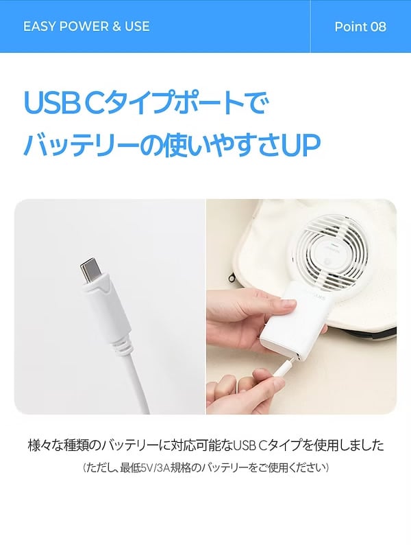 ※バッテリーは標準で付属しておりません。市販のモバイルバッテリー(5V/3A以上の規格)をご利用ください。