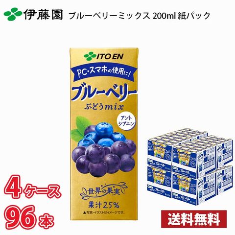 伊藤園 ブルーベリーミックス 200ml 紙パック 96本入り 4ケース 送料無料!!(北海道別途700円、沖縄県配送不可) / ブルーベリーミックス ぶどう糖