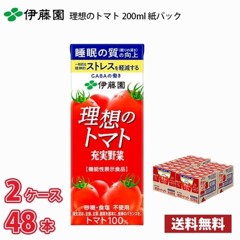 伊藤園 充実野菜 理想のトマト 200ml 紙パック 48本入り 2ケース 送料無料!!(北海道別途700円、沖縄県配送不可) / トマトジュース