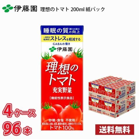伊藤園 充実野菜 理想のトマト 200ml 紙パック 96本入り 4ケース 送料無料!!(北海道別途700円、沖縄県配送不可) / トマトジュース