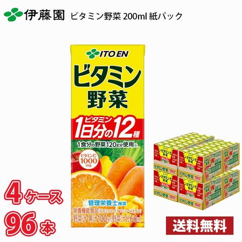 伊藤園 ビタミン野菜 200ml 紙パック 96本入り 4ケース 送料無料!!(北海道別途700円、沖縄県配送不可) / 野菜ジュース