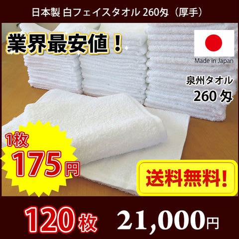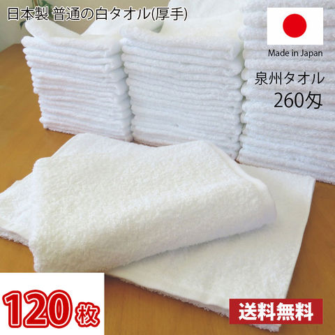 【送料無料】業界最安値!120枚セット ~ 日本製 泉州 白タオル 厚手 260匁 / タオル 普通のタオル 白いタオル 業務用タオル フェイス 白 ホワイト 業務用 床屋 散髪屋 美容室 美容院 理容室 掃除 まとめ買い 国産