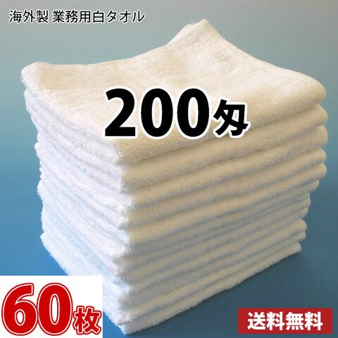 【送料無料】業界最安値 1枚89円 60枚セット ~ タオル 白タオル 普通のタオル 海外製 200匁 総パイル フェイスタオル 業務用タオル