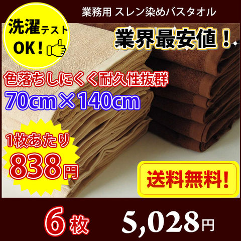 【送料無料】1枚あたり838円 同色6枚セット スレン染め バスタオル 1000匁 モカ ダークブラウン 70cm×140cm / 業務用 長持ちタオル