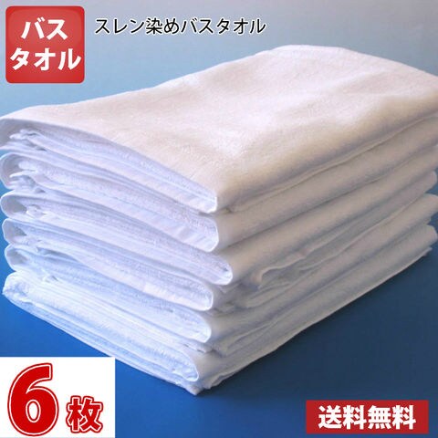 【送料無料】同色6枚セット 長持ちタオル 業務用スレン染め白バスタオル 1000匁 / タオル バス スレン染め 白 ホワイト 業務用 まとめ買い 丈夫