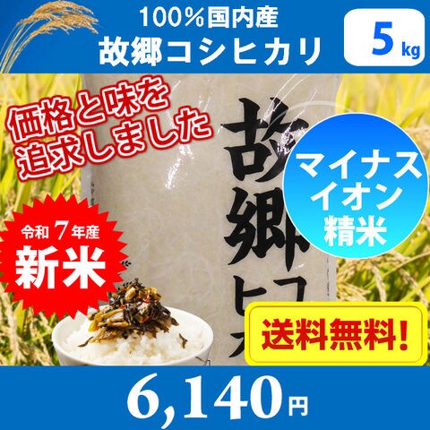 お一人様1個まで【令和7年産 新米】【精米】100%国内産 故郷コシヒカリ5kg 送料無料!!(北海道は別途700円かかります。沖縄配送不可)