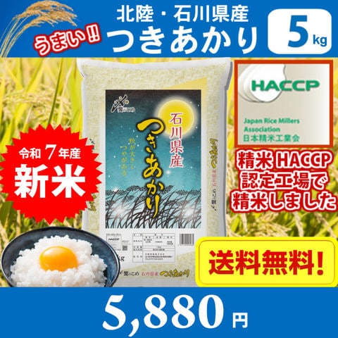 【令和7年産 新米】【精米】北陸・石川県産 つきあかり 5kg 送料無料!!(北海道は別途700円かかります。 沖縄配送不可。) 沖縄配送不可。)