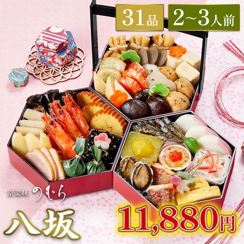 【 送料無料 】本格京風おせち料理 京菜味のむら 「八坂」 【長辺約六寸、短辺約五寸 三段重、31品目、2人前~3人前】 2025 2026 京菜味のむら おせち 予約 おすすめ 2026年 お節料理 お節 御節 osechi oseti 冷凍 冷凍おせち