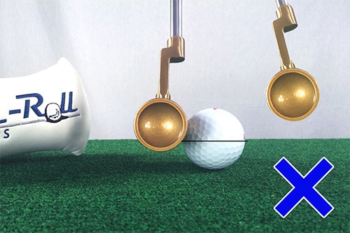 トゥルーロールパターでパッティングすることで、同じようにダフったとしても、丸形は接地面が少なくなるため、ミスに強くなります。