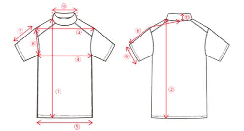 | 9 | 袖口(cm) | 16.5 | 17 | 17.5 |
