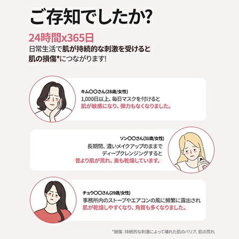 持続的な刺激により壊れた肌のバリアを改善し、弾力のあるしっとりとした地肌に仕上げる肌のバリア強化エッセンスローション。