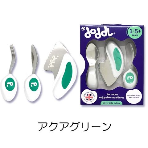 アクア グリーン(DOD001)ドードル doddl 3点セット 子供用 離乳食 食器 スプーン フォーク ナイフ