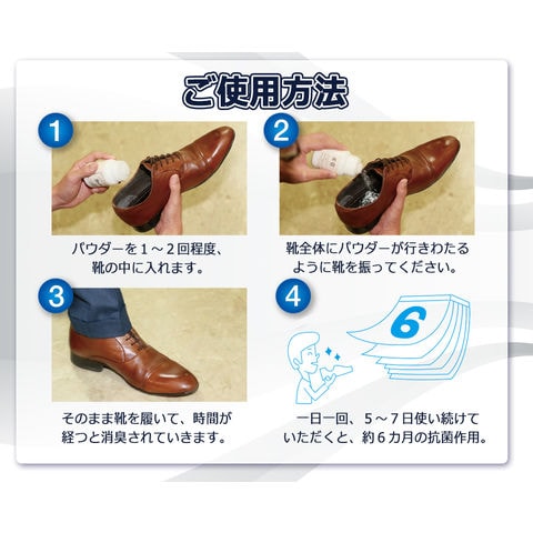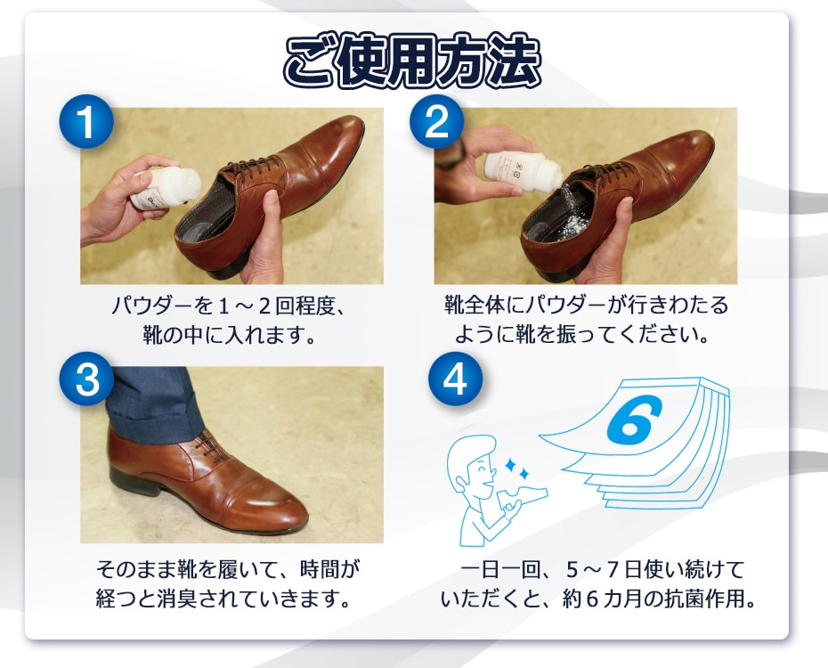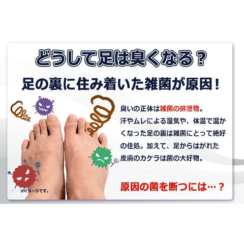 環境先進国・ニュージーランド生まれの足用除菌・足用消臭パウダーです。天然由来の安心・強力な除菌・消臭効果で、足のイヤな臭いの元となるバクテリアを根源から除去!効果は長期間持続します。