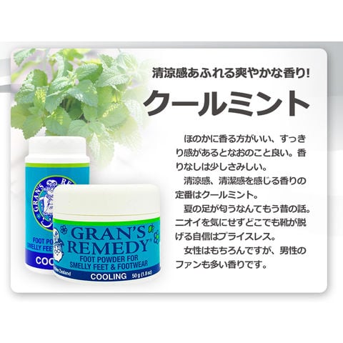 グランズレメディ 50g 安心なQRコード付き クールミント 送料無料 足用消臭剤 Gran's Remedy フットケア