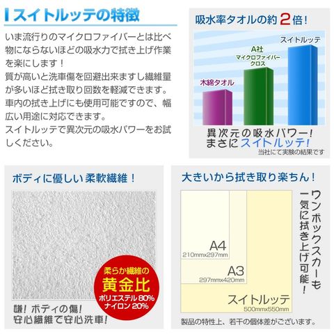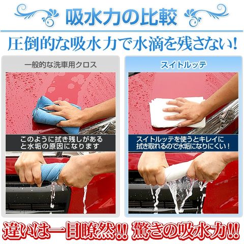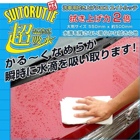 【洗車用拭き上げクロス】スイトルッテ[1枚/2枚/4枚] 超吸水 水滴を残さない滑らかな拭き心地 マイクロファイバーとは比べ物にならないほどの吸水力【ウエス】[1]