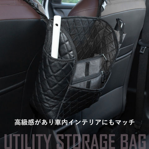 多機能収納バック 収納 カー収納 車内バッグ 収納グッズ 便利グッズ 省スペース 吊り下げ収納 カーバッグ 車載バッグ 収納 荷物 汎用 カーアクセサリー ブラック PU レザー 撥水 [1]
