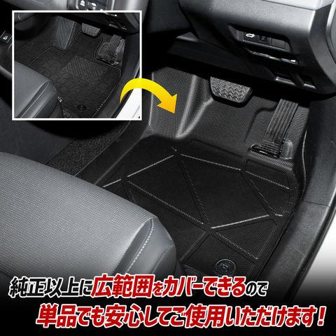 ・フロアをスキャンして製作しているのでピッタリフィット! ・付属のマジックテープ・両面テープで固定するので運転中にマットは全くズレません! ■純正マットの端から落ちるゴミや砂をガッチリガード!! ・隙間なくフィットするので、ゴミや砂が直接車両床に落ちることはありません。 ・3Dデザインなので縁の数センチの立ち上がりで水や汚れをしっかりキャッチ! ■完全防水なのでお手入れも簡単! ・水や汚れは軽いものならウエスなどで拭くだけでOK! ・全面的に汚れた場合は丸洗いも可能なので衛生的です。 ■新素材の熱可塑性エラストマー(TPE)を使用。 ・弾力があり、曲げたりすることも可能なので、お車からの取り外しも容易です。 ・ゴムのように車内が臭くなりません。 ・耐久性抜群なので何十万キロ走っても大丈夫です。 |