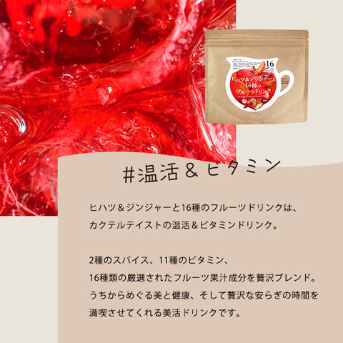 ヒハツ&ジンジャーと16種のフルーツドリンク 200g (温活 ビタミン補給 しょうが湯 生姜 ヒバーチ スパイス 美容ドリンク)