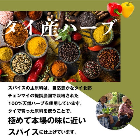 チェンマイの人気スパイス・ハーブ店「マザーホームチェンマイ」と共同で開発した無添加の天然ハーブ調味料です。 日本ではなかなか味わえない本場の味をご家庭で手軽にお楽しみください。