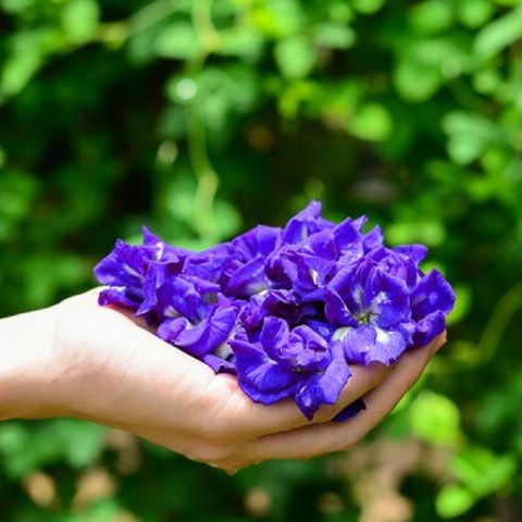 花弁を乾燥してハーブティーとして多くの人に親しまれ、その見た目のブルーの美しさと、 レモンやライムなどのクエン酸で青から紫に変化する幻想的な演出、 美容成分アントシアニンはエイジングケアを育むとして美容、健康に人気の花茶です。