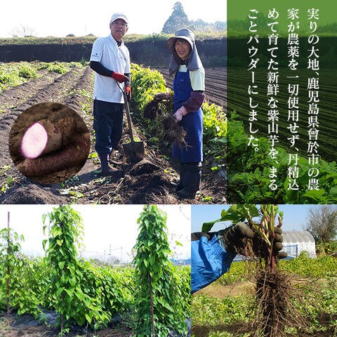 実りの大地、鹿児島県曾於市の農家が農薬を一切使用せず、丹精込めて育てた新鮮な紫山芋を、まるごとパウダーにしました。