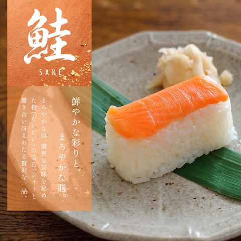 鮮やかな彩りと、まろやかな脂の鮭(サケ)寿司