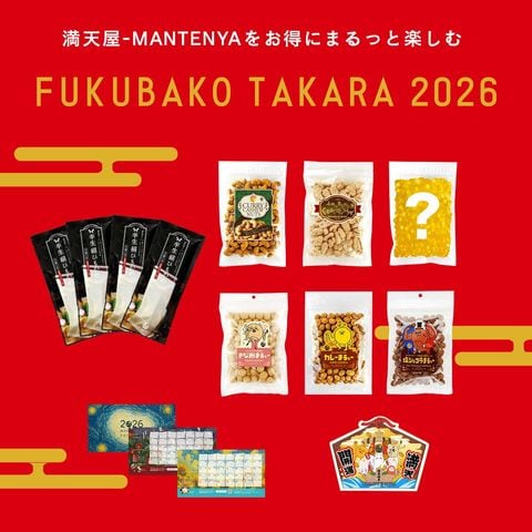 【数量限定 福袋】満天 福箱 2026 「宝」~とってもお得な豪華12点のベストセレクション~(カレーカシューナッツ、きな粉くるみ、カレーまるぅー、きな粉まるぅー、塩ショコラまるぅー、シークレットアイテム、ひもかわうどん×4袋、2026年卓上カレンダー、開運ステッカー)