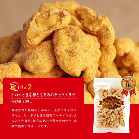 厳選された良粒のくるみに、上品にキャラメリゼし、たっぷりときな粉をコーティング。クルミときな粉、双方の魅力を引き合わせた、濃厚で奥深いスイーツです。