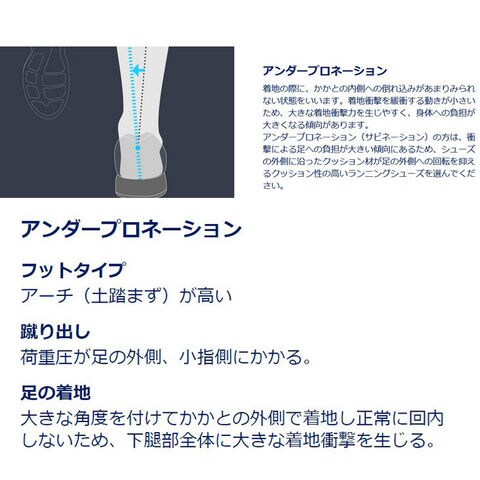 なお、アンダープロネーションに対応しているアシックスの商品は、足部が外方向に回転する動きである