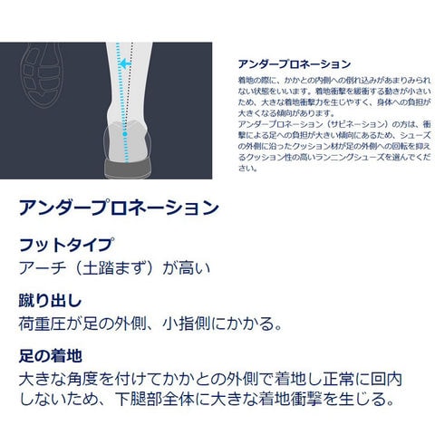 足に合ったランニングシューズを選ぶのに役立ちます。なお、アンダープロネーションに
