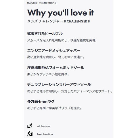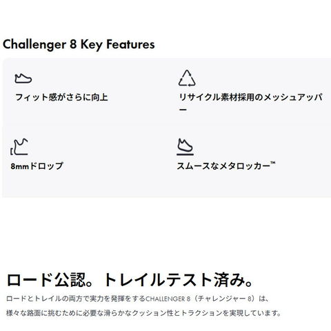 ホカ(HOKA)から、メンズのランニングシューズ[CHALLENGER 8]です。