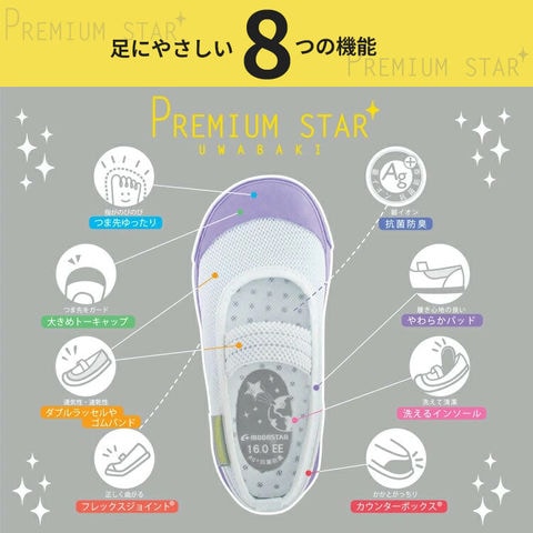 MoonStar(ムーンスター)からオリジナルデザインのキッズ用「うわばき」プレミアムスターです。