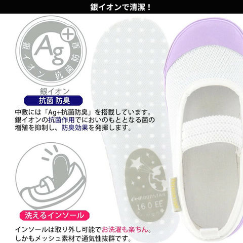 中敷には「Ag+抗菌防臭」を搭載しています。