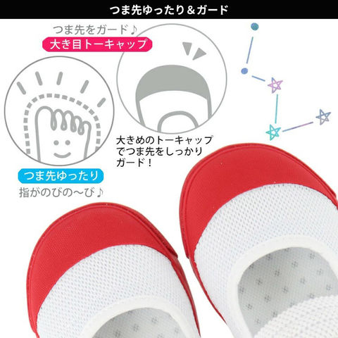 つま先の形状がゆったりと設計され、足指の成長をさまたげません