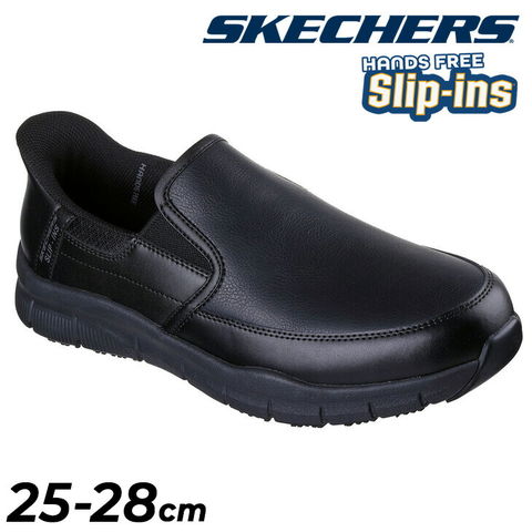 送料無料 スケッチャーズ スリップインズ メンズ ワークシューズ 作業靴 感電防止 SKECHERS NAMPA-BROXTIN ハンズフリー スリップイン 男性 防滑レザー 革靴 メンズスリッポン 立ったまま履ける 作業靴 普段履き 通勤 紳士靴 シンプル ブランド くつ/200304