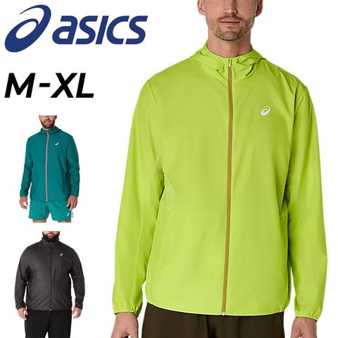 送料無料 アシックス ランニングジャケット メンズ asics ドライウーブンジャケット ウインドブレーカー スポーツウェア アウター ジョギング 陸上 トレーニング 運動 男性用 フルジップ フード付き ワンポイント ロゴ 紳士 服 黒 グリーン ブランド アパレル/2011D294
