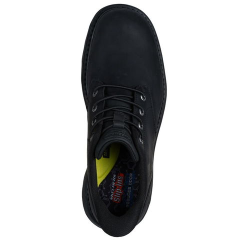 ストレッチレースを配したレザーのアッパー、木炭入りのSkechers Air-Cooled Memory Foam