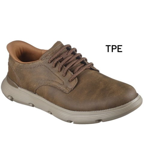 ストレッチレースを配したレザーのアッパー、木炭入りのSkechers Air-Cooled Memory Foam